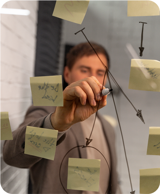 Nadie conoce tu negocio mejor que tú, por eso trabajamos de forma colaborativa, definiendo juntos objetivos clave y escenarios de innovación que abren camino a nuevas oportunidades. Diseñamos estrategias creativas y viables que se adaptan a tu contexto y metas de crecimiento.